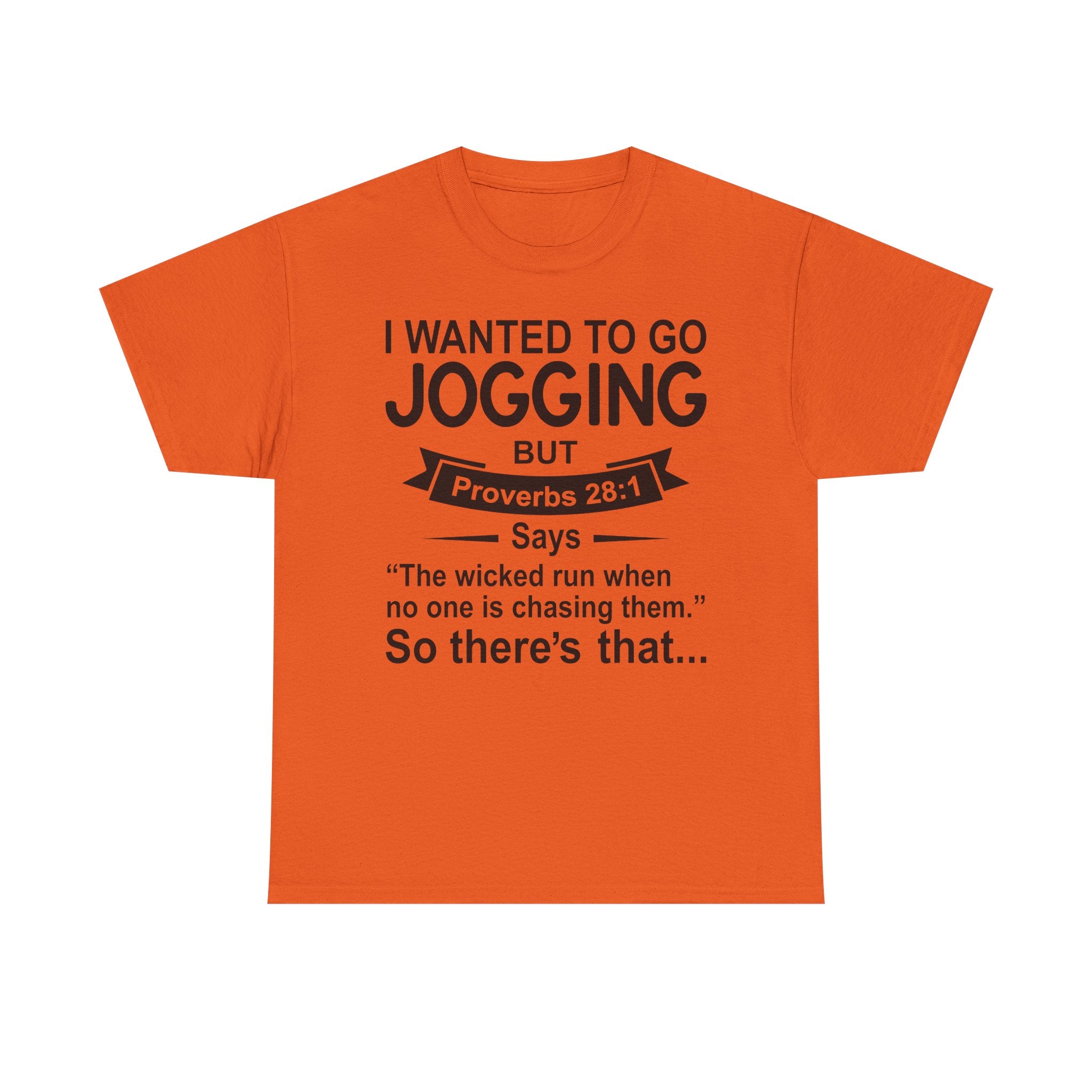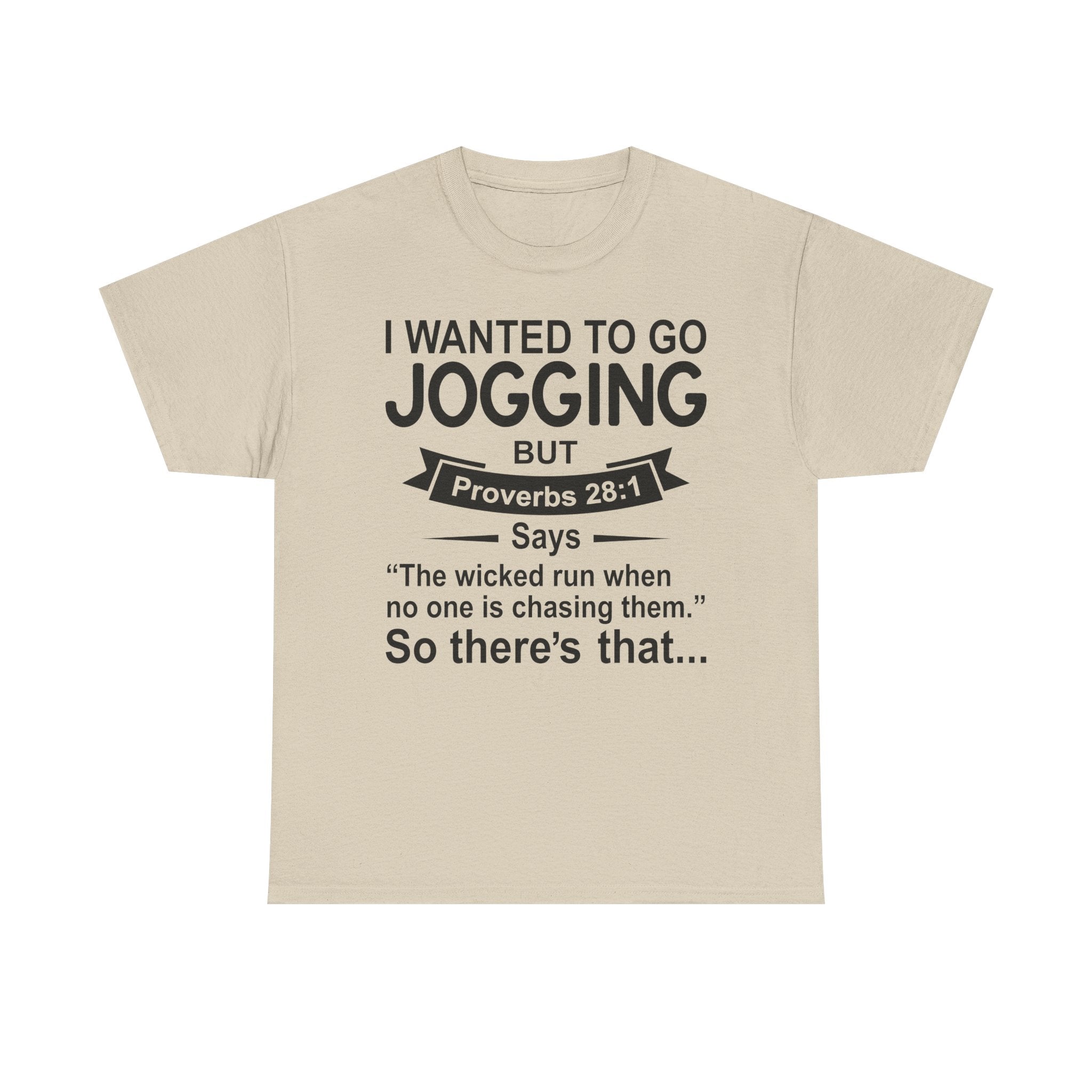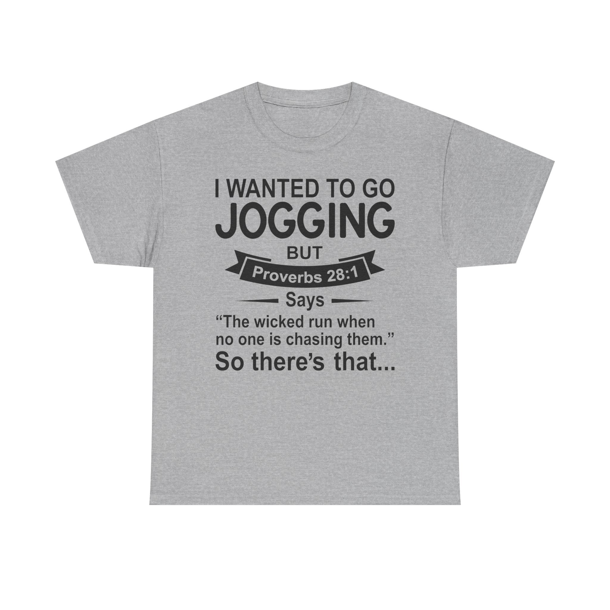Christian Humor T-Shirt — “I Wanted to Go Jogging But Proverbs 28:1” Funny Faith Tee - Funny Bible Quote T Shirt - Christian Humor Tee