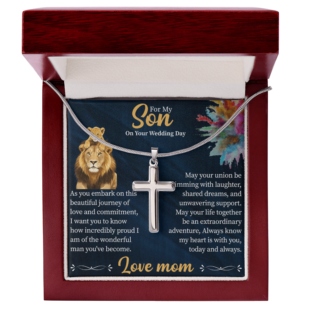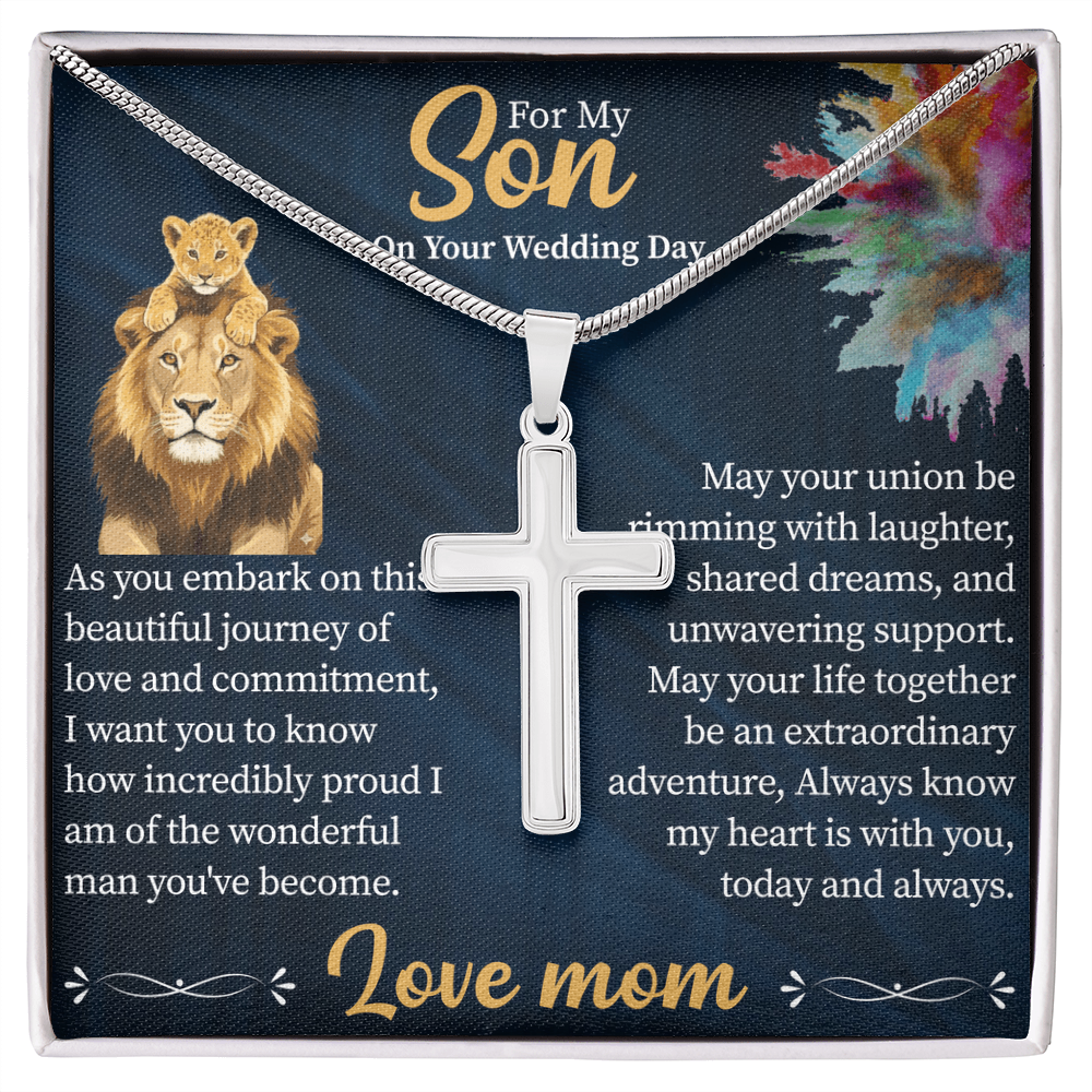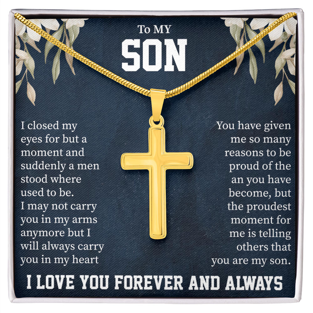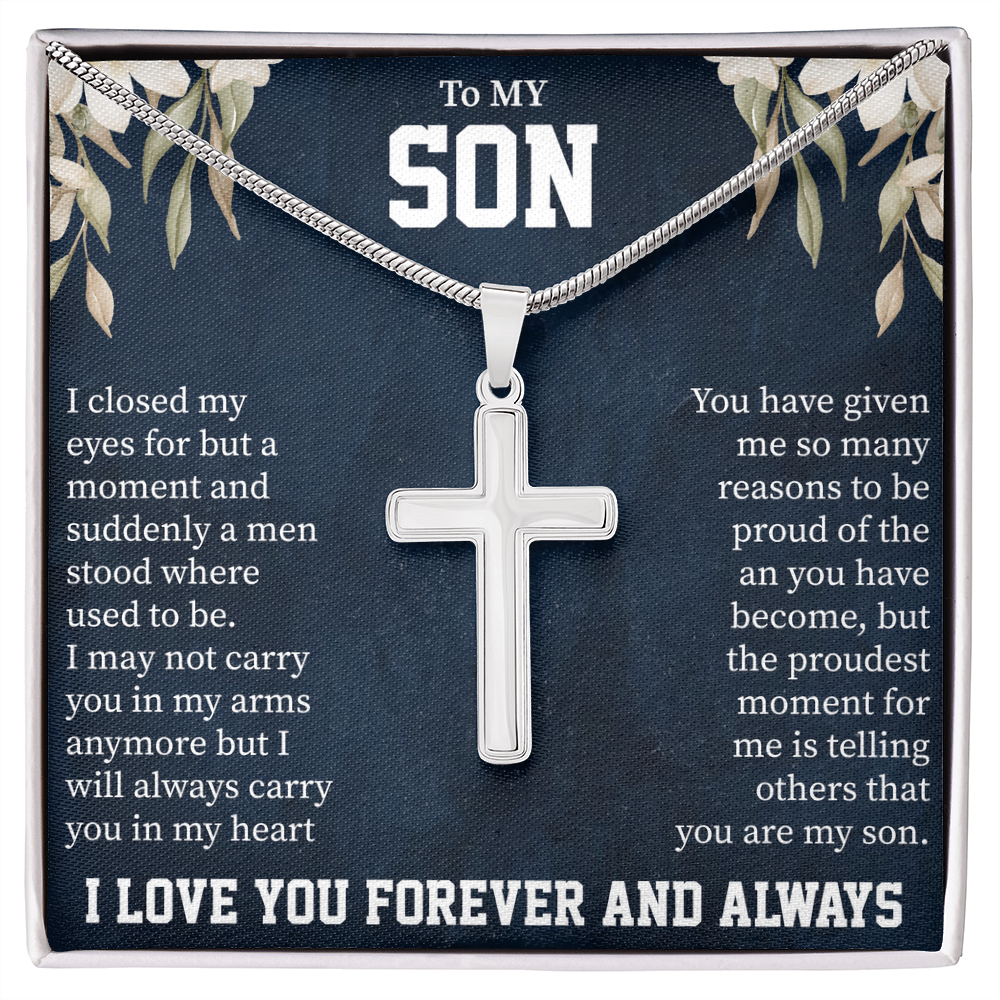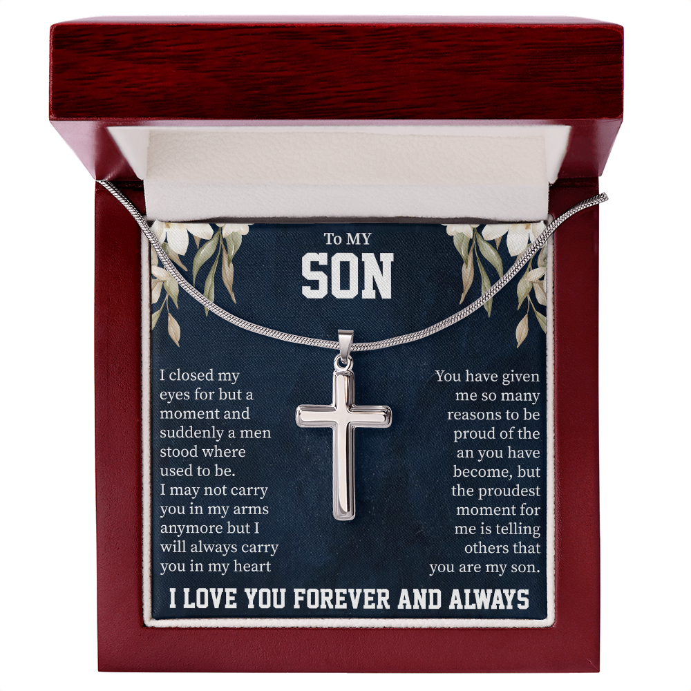 To My Son Artisan Cross Necklace – Snake Chain – Meaningful Gift from Mom or Dad with Message Card