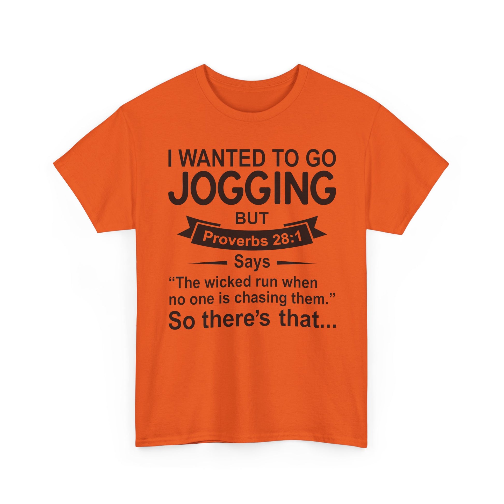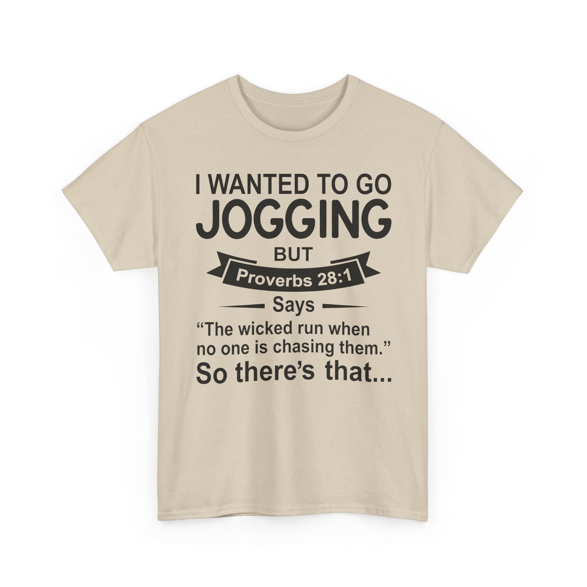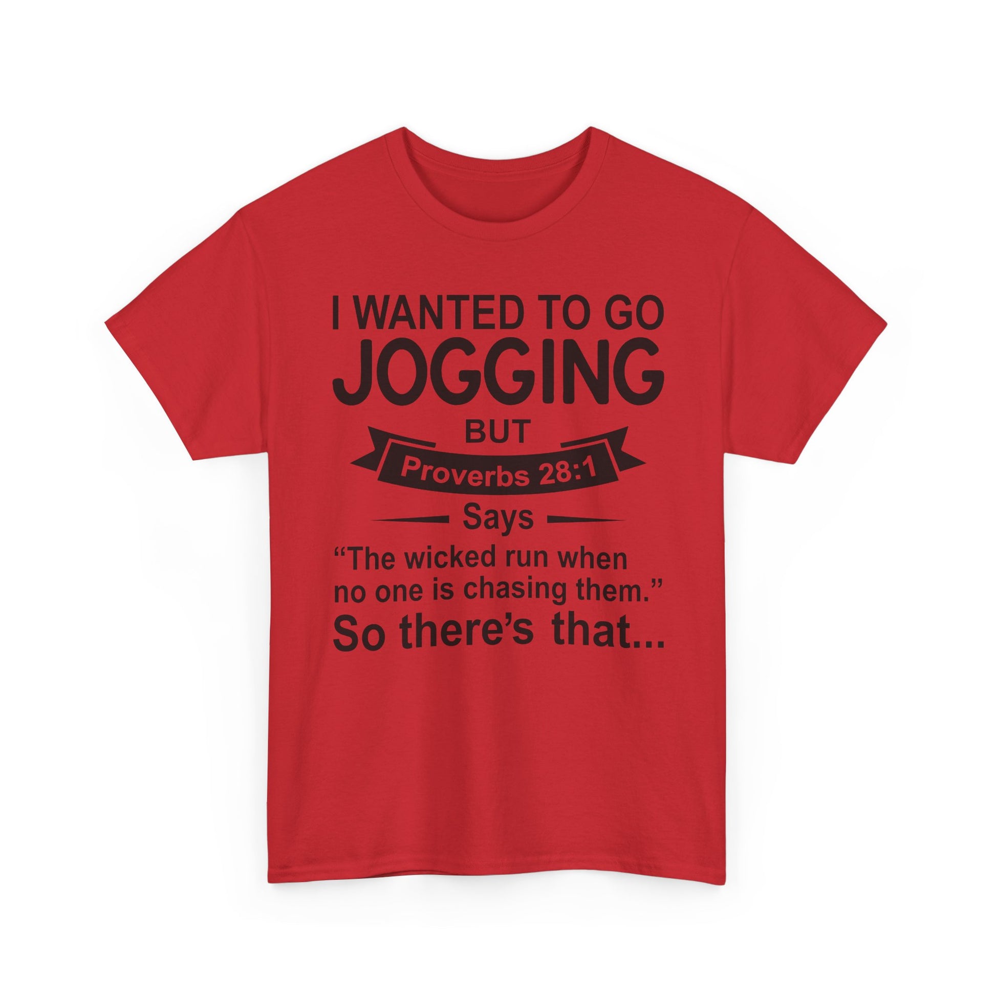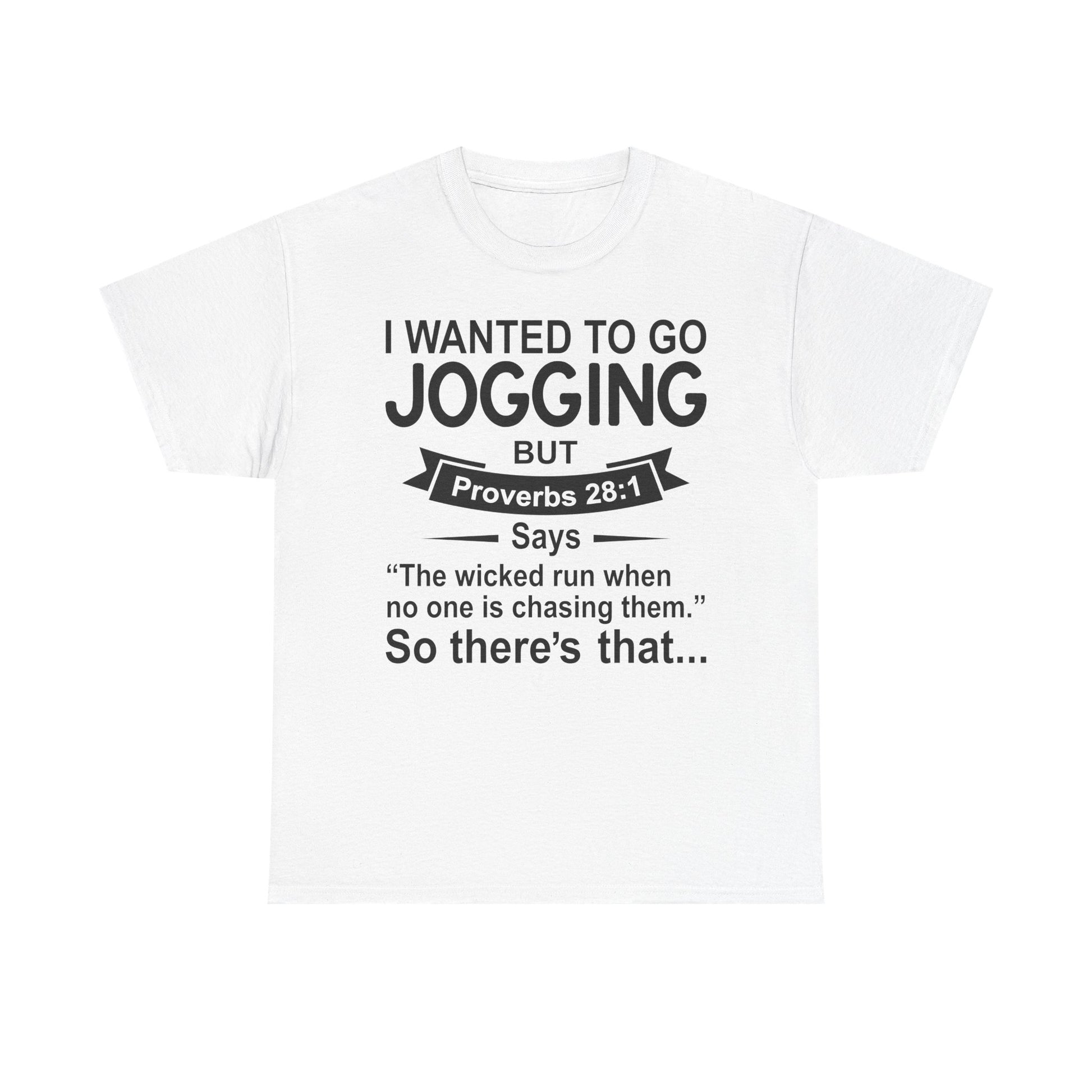 Christian Humor T-Shirt — “I Wanted to Go Jogging But Proverbs 28:1” Funny Faith Tee - Funny Bible Quote T Shirt - Christian Humor Tee