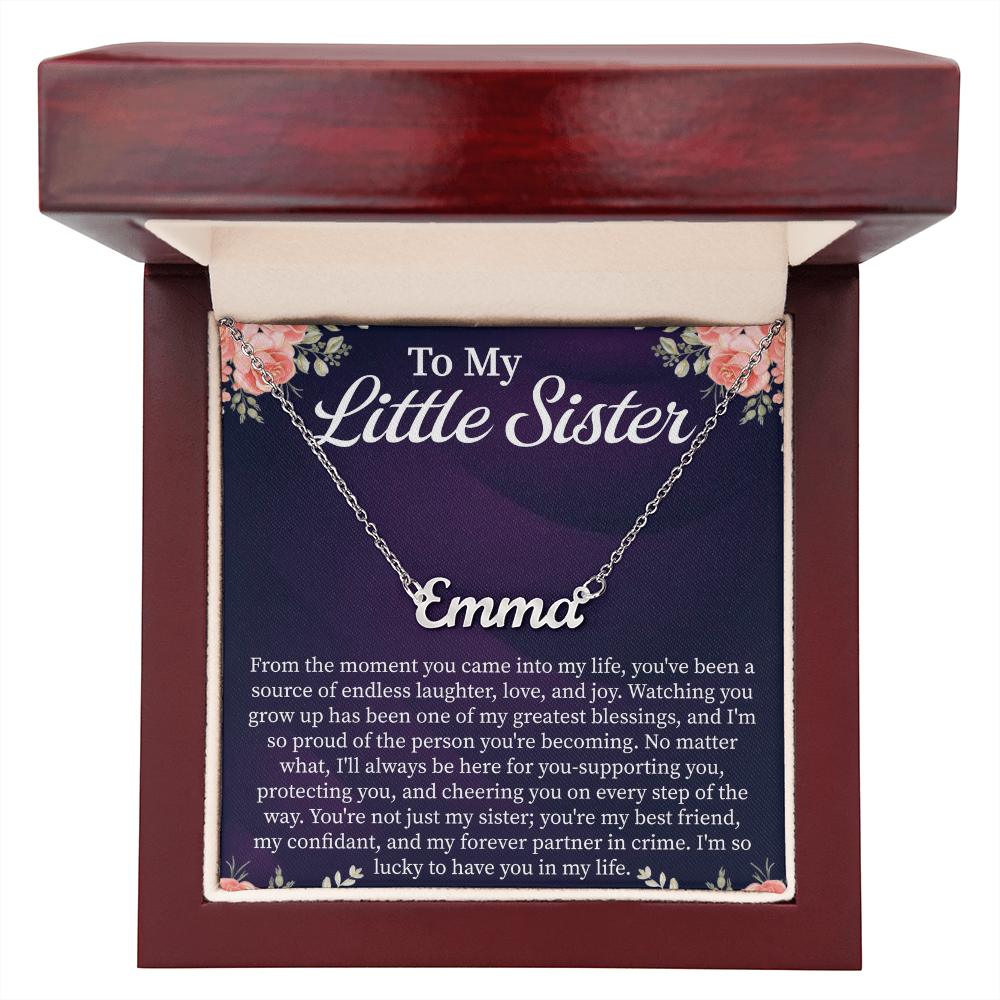 To My Little Sister Custom Name Necklace – Personalized Gift for Sister – Meaningful Jewelry with Message Card
