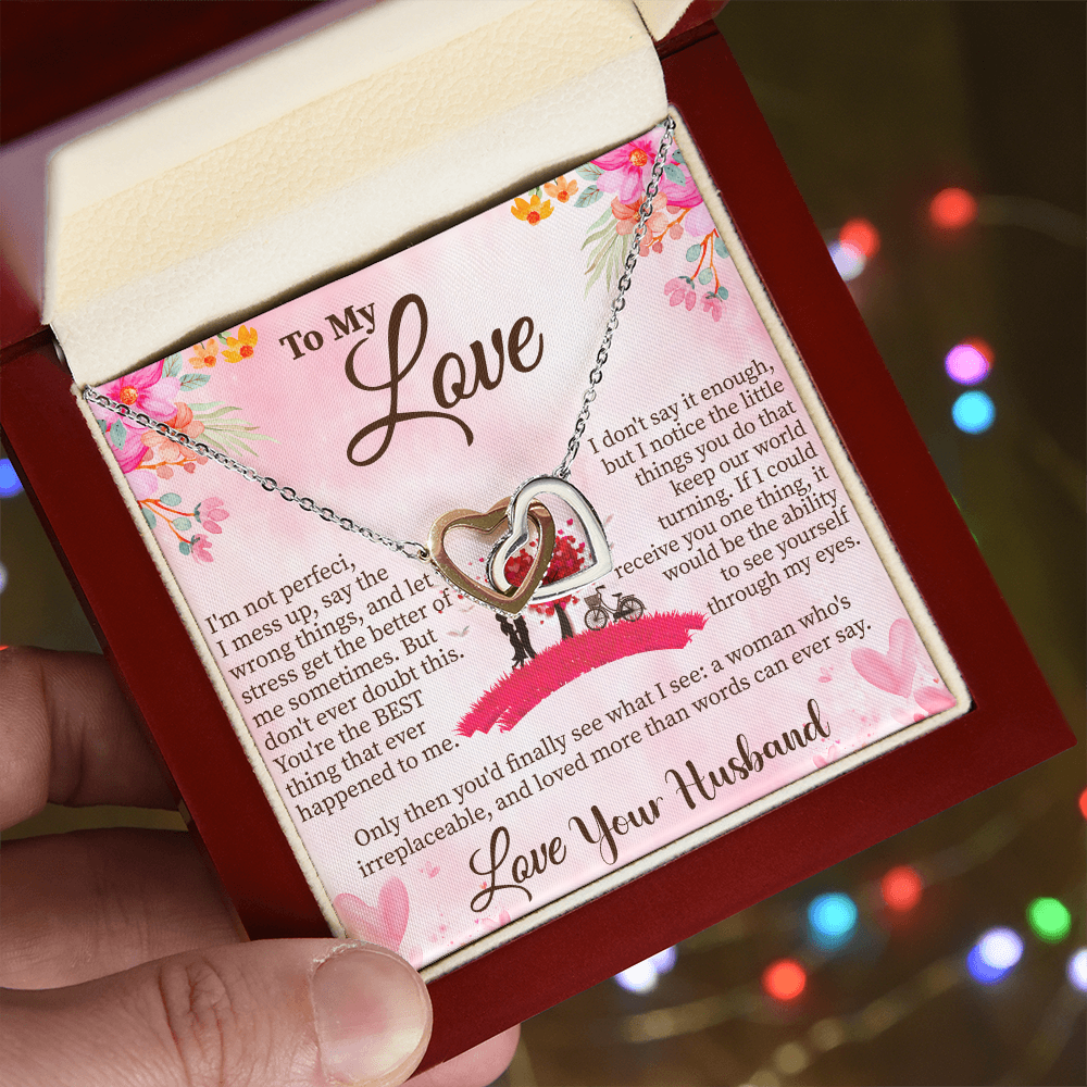To My Love Interlocking Hearts Necklace – Romantic Gift for Her – Anniversary, Valentine's Day, or Birthday Jewelry